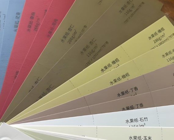 在印刷和加工方面,水果纸可以适应多种工艺,例如UV印刷,在局部增加光泽效果,增强图案的立体感;烫金烫银,在纸张表面烫印金属色,提升视觉档次;凹凸压印,用纸张的厚度,压出立体花纹,增加触感。