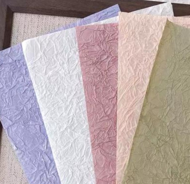 带你了解更多特种纸,今天认识“手揉纸” 。手揉纸表面有类似手工揉捏后产生的清晰褶皱纹理。这些纹理是它最显著的标志。 当你触摸它时,能直接感受到纸张表面的凹凸不平。纸张本身带有一定的韧性,不是软塌塌的感觉。 基础色常为米白、浅咖、牛皮色等自然、复古的色调。同时,也有多种鲜艳的彩色可供选择,满足不同设计需求。
