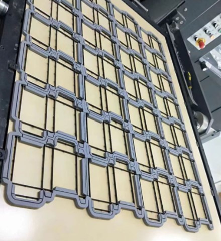 确定好模切板的相关参数后,就进入制作环节。在制作模切板的过程中,有一个关键步骤,那就是要在模切板上贴上一些海绵条。海绵条的作用可不容小觑,它能在模切过程中起到缓冲和保护的作用,防止模切好的纸张等材料断裂,还能保证走纸的顺畅性。