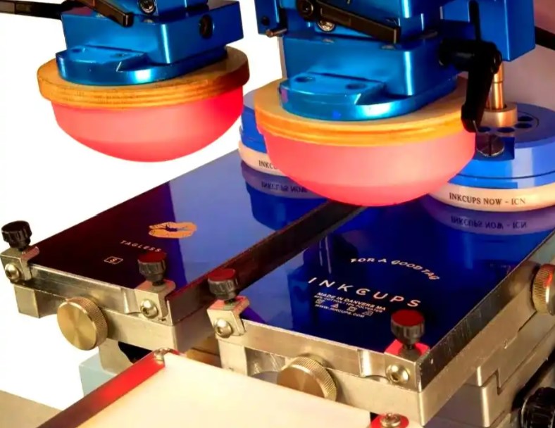 最后是移印。移印利用的是硅橡胶材料制成的曲面移印头,先把凹版上的油墨蘸到移印头的表面,接着将移印头往需要印刷的对象表面压一下,就能轻松印出文字、图案等,常用于一些形状不规则的物品印刷,比如电子产品外壳、玩具表面等。